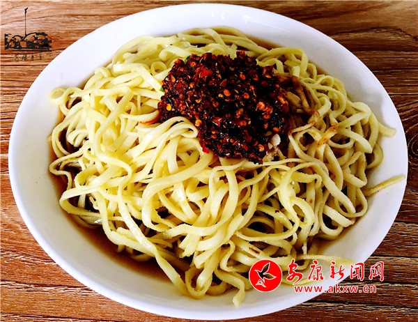 在恒口,涼面作為大眾面食,家里來了客人,主婦都會做涼面招待。搟一案子面,切成筷子寬的長條,下鍋煮開就撈,滴上香油,快速挑起用扇子扇涼,配上幾個(gè)可口的素菜就齊活了。醋湯、油潑辣子、青辣大蒜,還有花生碎。雖然調(diào)料不多,但每一樣都很講究。醋汁需用十幾種大料熬制,要保證每次熬出的醋湯味道一致,大料要精確比例。油潑辣子要選用上等干辣椒,炕干再配上調(diào)料打碎。每一樣精心調(diào)制的配料要達(dá)到色香味俱全,構(gòu)成了傳統(tǒng)涼面的精髓。