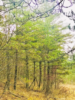 凋葉殘雪薄冰,綠苔紅樺深林;