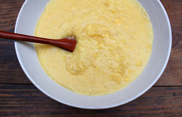 看!那磨得不粗不細的玉米糝在沸騰的開水鍋中上下翻滾,吹出一個個密匝匝黃金泡泡,如同平靜的湖面被雨水打過一樣,泛起一串串漣漪,直到它煮的黏的可以用鍋鏟舀起來,朝碗里倒的能夠連接的時候,才可以把糊豆兒盛出來食用。吃糊豆兒的絕配,要數(shù)豆豉、酸菜、酸辣土豆片……盛飯的時候,最好先用涼水將碗打濕,這樣后面洗碗的時候才方便快捷;吃的時候,最好從碗邊一口一口慢慢吃,吃快了會燙嘴哦,吃完后的碗也是干干凈凈的。糊豆兒,有很多種做法,依據個人口味“百搭”。拌一些酸菜煮,叫酸菜糊豆兒;放一些綠豆煮,叫綠豆糊豆兒;加一些紅薯煮,叫紅薯糊豆兒;加上一些時鮮綠色蔬菜,出來的糊豆兒猶如一碗翡翠,既好看又好吃?傊,可以放放放、加加加、搭搭搭、配配配……只要你喜歡!