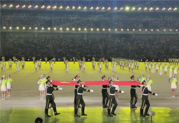 隨后,五星紅旗冉冉升起,6萬人齊聲唱國歌。“起來,不愿做奴隸的人們,把我們的血肉,筑成我們新的長城……”當這首從小根植在我們腦海中的歌曲在奧體中心上空飄揚,場面十分壯觀,這一刻我不禁熱淚盈眶!第一次參加如此壯觀的升旗儀式,第一次近距離參加如此龐大的體育盛會,內(nèi)心頃刻間升騰起無比強大的民族自豪感,真切感受到祖國的繁榮強大、團結(jié)富強,越發(fā)覺得我們能夠生在長在偉大的中國,是多么自豪、多么驕傲!能夠生活在這個繁榮昌盛的時代,是多么幸運、多么幸福!