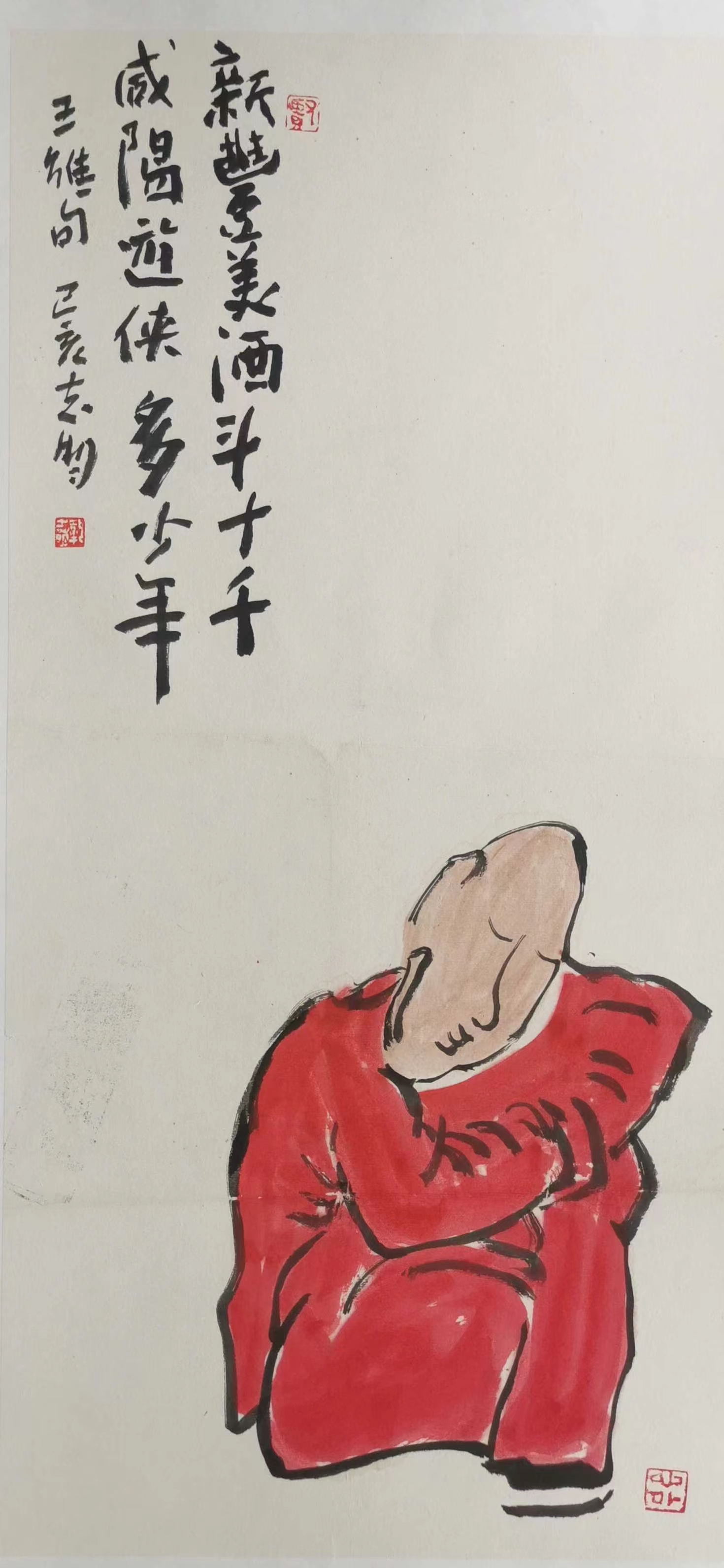 記得那一年的端午節(jié),鞏志明發(fā)來短信,是他寫的一首詩:綠粽黃酒聚江邊,白帆紅燭祭屈原。三千清淚流不得,九萬渾念飄上天。誰有郁悶誰散淡,何謂圓滑何忠奸。十丈風(fēng)塵古今在,談笑真?zhèn)位聼煛?017年,我遷新居,鞏老師為我寄來小品畫《福到眼前》,我很喜歡,并懸掛至新居玄關(guān)。這些年,鞏志明老師常做影展畫展策劃及影評講座,自已也臨池不輟,水墨丹青,寄情抒懷,他的文人小品有思想性、有創(chuàng)造性。雖畫的是松風(fēng)明月,小舟流水或遠(yuǎn)古人物,但都寄托了他當(dāng)下的心境,以消塊壘。誠如有人評論他為“吾師真文人,畫亦真性情!”他不僅只是身居畫室的怡情文人,他亦是心憂天下的豪俠。面對世間不平事,他也是激揚(yáng)文字,揮斥方遒!在功利的當(dāng)下,鞏志明尤其顯得難能可貴!